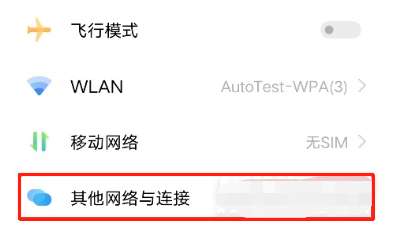 1、在手机设置中点击其他网络与连接。
