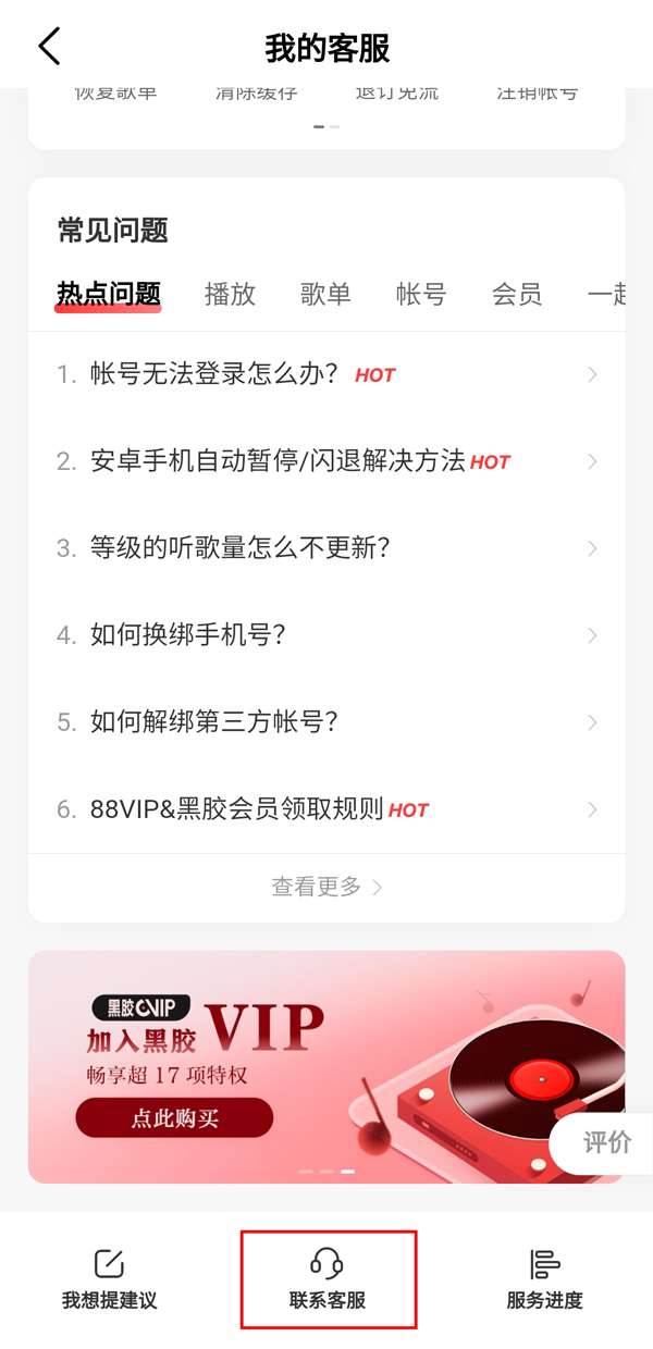 2、找到【联系客服】。