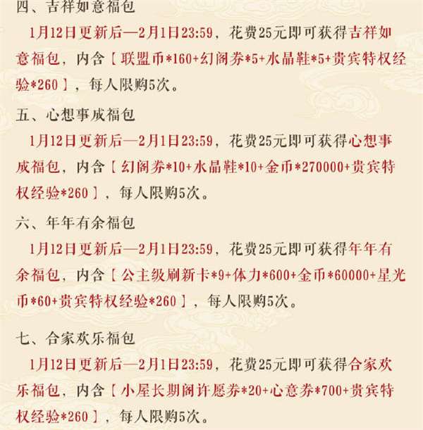 3:在活动期间还有特惠礼包,公主级多倍,星光币双倍开启,助力制作套装等等的玩法,具体的礼包福利如图所示,你们可以详细的进行阅读,再决定买不买;
