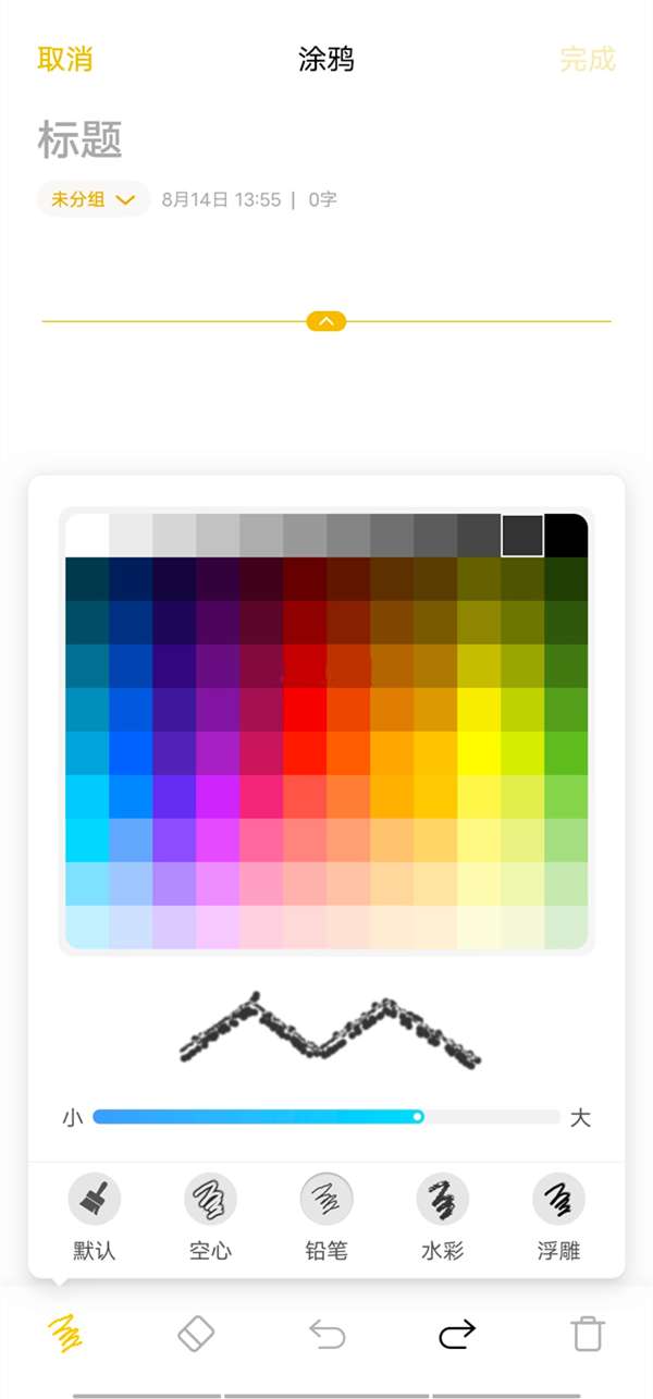 2、点击涂鸦,选择画笔和其他绘画工具,在页面上就能画画啦。