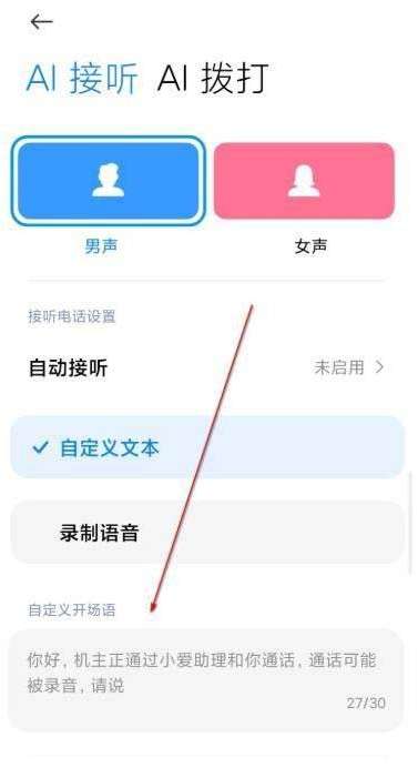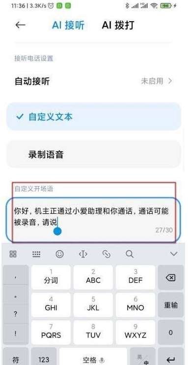 4、选择下面的文本,还可以自定义设置开场语。
