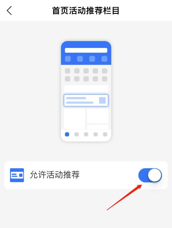 4、最后在这将允许活动推荐右侧按钮关闭即可。