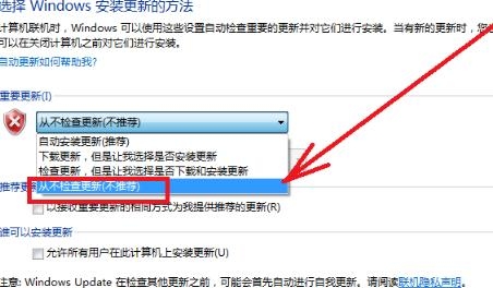4、选择“从不检查更新”