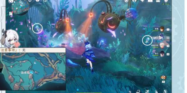 3,来到谐律院,与两侧的章鱼对话,放出鱼钩,把两个机械鱼引开。