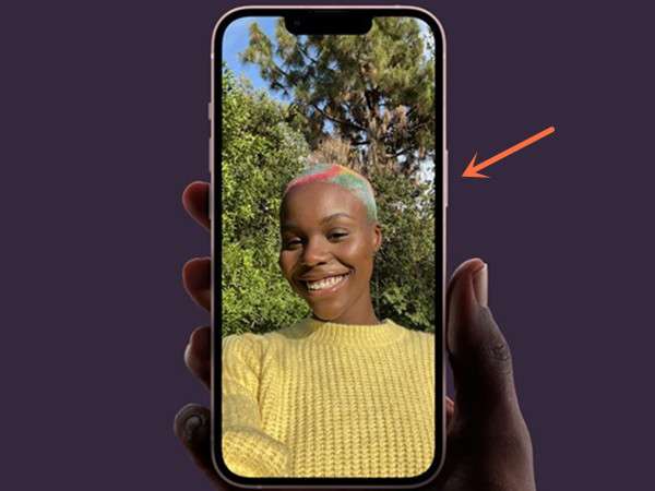 2、然后按住侧边的电源键按钮,等待系统的Apple图标出现,松开按钮即可强制重启。