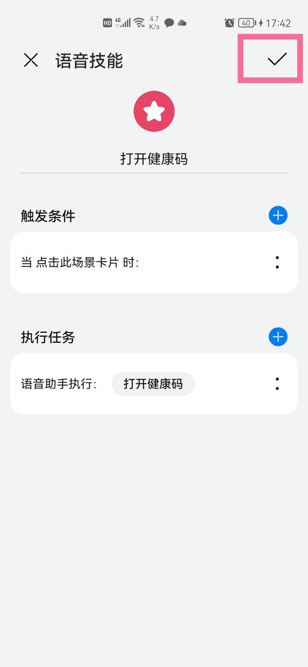 2、为指令设定触发条件,将执行任务设定为打开健康码。