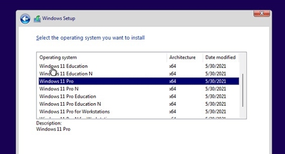 4.等待安装程序运行,将弹出以下界面,选择“Windows11 Pro”