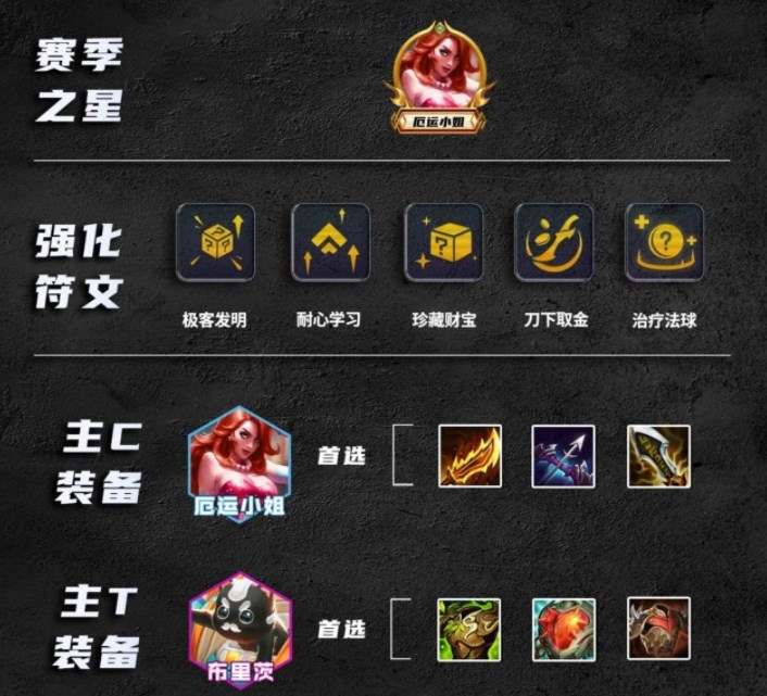 1、爵士乐羁绊类似于之前赛季的并肩作战符文,羁绊数量越多阵容强度越高,这套体系可玩的主c厄运与巴德,一法一物看装备选择。