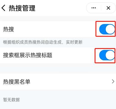 4、返回到搜索管理页面,热闻管理同上,关闭两个开关。