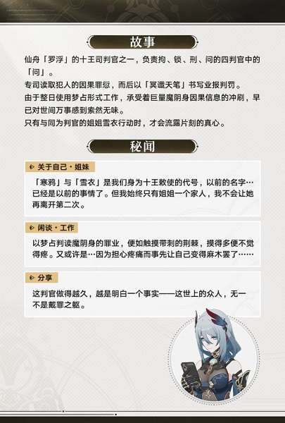 小女子乃是十王敕使「寒鸦」,列名拘、锁、刑、问四位判官之末…