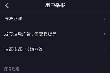 2、然后通过右上角的“...”按钮打开列表,通过底端的“举报”选项就可以选择理由向进行官方投诉,投诉理由包括了违法犯罪、发布垃圾广告、售卖假货、造谣传谣、涉嫌欺诈、冒充官方、盗用TA人作品等。