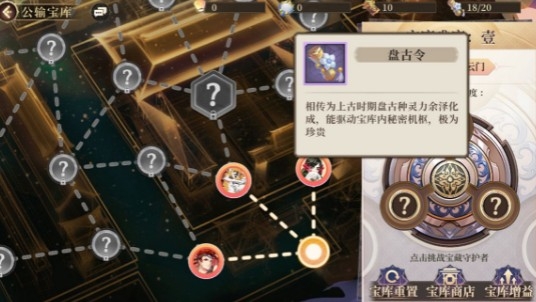 活动将于8月10日10点到8月24日5点开启,玩家需要通过探索路径寻找线索,进而获得活动代币,来在商店中换取各种丰富的奖励。在活动的难度选择上,公输宝库分为了5个难度,首次挑战为1级难度,随着每次挑战难度逐渐上升,奖励也会更丰富,玩家首次可以选择学宫势力或云门势力作为探索阵营,选择后不能更换,每次重新探索可以重新选择阵营,但要重新开始探索,出现的探索事件,可以消耗盘古令来探索,还可以在探索路径上挑战宝藏守护者,完成三个探索,就可以获得公输宝藏了。
