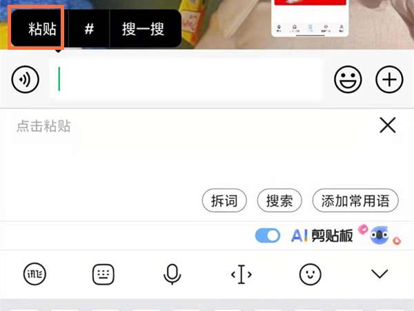 2、在笔记页面,输入空白键,长按空白消息,点击剪切。