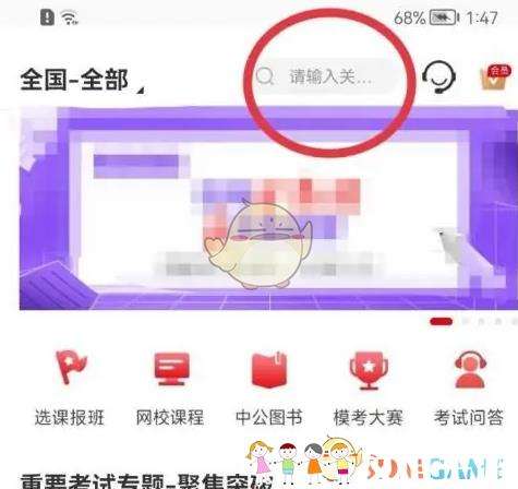 1、在中公教育app点击【搜索框】按钮。如图所示