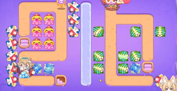 1、阿波与魔法宝藏第28关直接建造两个满级章鱼在如图所示的位置,可以快速炸掉旁边的全部小建筑物。