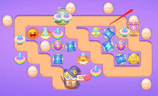 4、最后一遍增加线上的炮台数量强化伤害能力,也要注意把场上所有的道具全部清理干净拿到全清,完成通关。