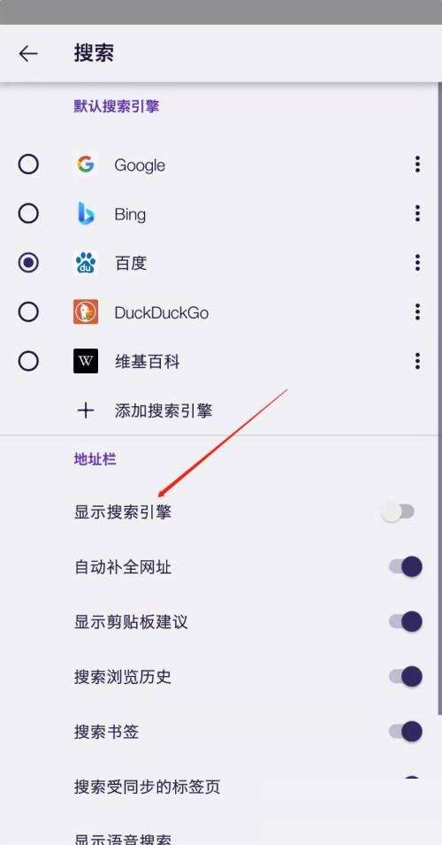 3、最后,进入搜索界面,点击显示搜索引擎即可。