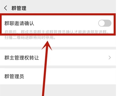 4、将【群聊邀请确认】后方按钮开启即可。