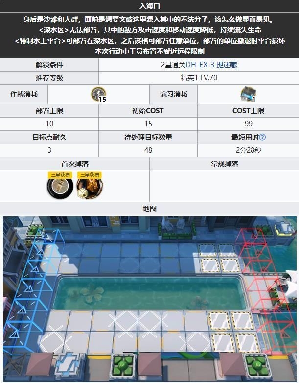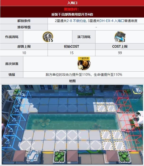 明日方舟多索雷斯假日活动第二段开启,DH-EX-4入海口是新上线的活动关卡,突袭附加条件是重装干员部署费用提升至4倍。