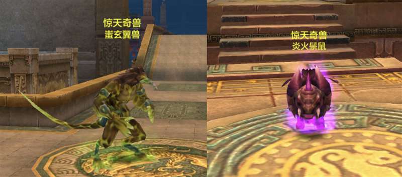 火鬃鼠、玄翼兽暴力珍兽,地宫击杀奇兽BOSS即得:不知少侠是否还记得这么一句口诀:老鼠要冒火,鸟人兽要绿头。当年不曾拥有顶变老鼠、顶变鸟人的少侠,这次可千万不要错过。在4月13日至4月19日期间,少侠前往秦皇地宫3-5层(根据玩家自身等级)击杀奇兽BOSS,将掉落可捕捉的火鬃鼠、玄翼兽宝宝。