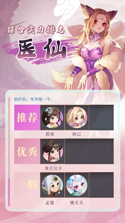 2、推荐玩家们培养碧霄、妲己这两个角色,龙吉公主、孟婆、桃夭夭不推荐玩家们培养。