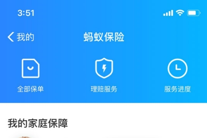 1、打开支付宝,在“我的”界面中,找到“蚂蚁保险”;
