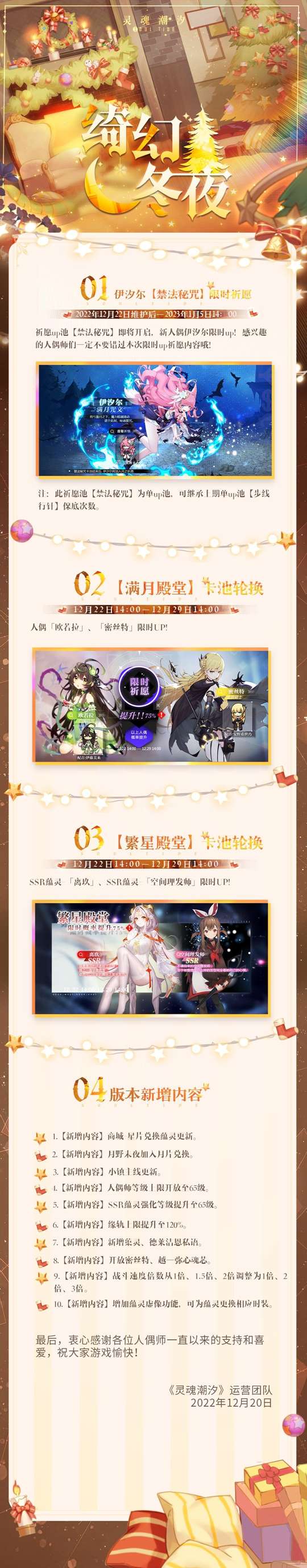 灵魂潮汐版本更新 12月22日绮幻冬夜全新版本强制更新维护公告一览