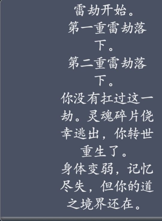 之后假如渡劫失败会触发下面的事件。然后转世重生。