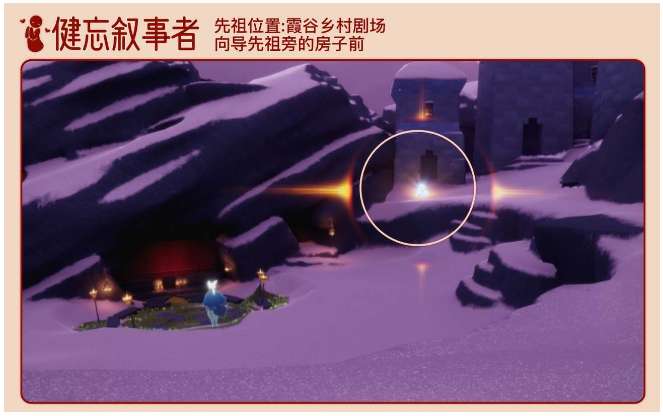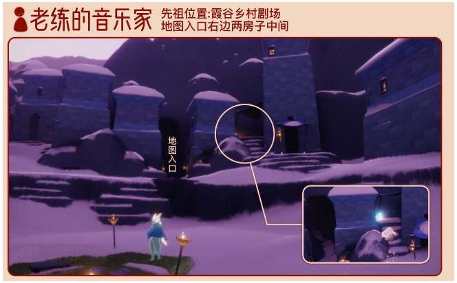 4、老练的音乐家,地图入口右侧,两个房子中间;追忆可获得0.5根白蜡烛;