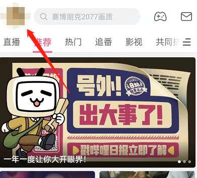 1、打开哔哩哔哩,点击头像。