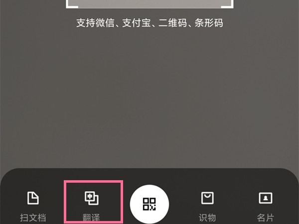 2、在扫一扫界面下方点击翻译选项进入即可。