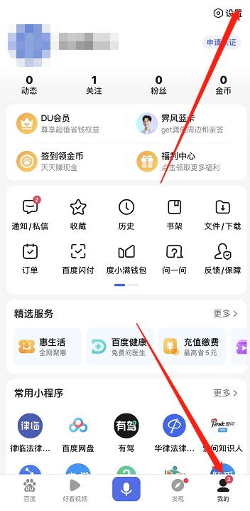 1、打开百度,点击【我的】。