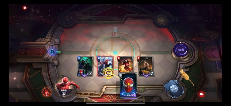 第四回合先购买蜘蛛侠,技能效果是眩晕和阵亡,阵亡后我方蜘蛛宇宙角色+12战斗力并且眩晕所有敌人用来放到第二位吸收伤害送死。然后再买一个蜘蛛侠面具装备给蜘蛛侠装上。