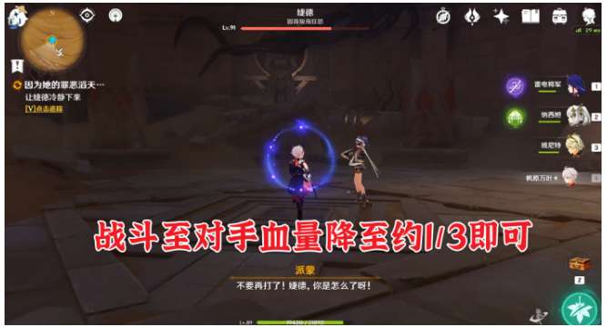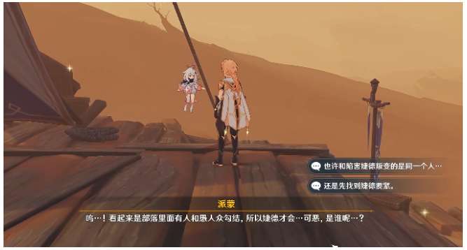 7、和派蒙对话后,向尤夫腾、芭别尔汇报调查结果和情况。