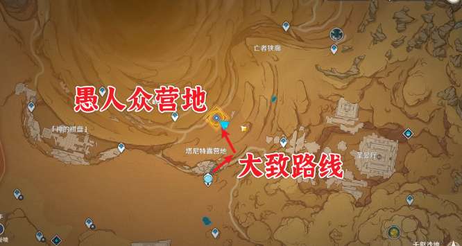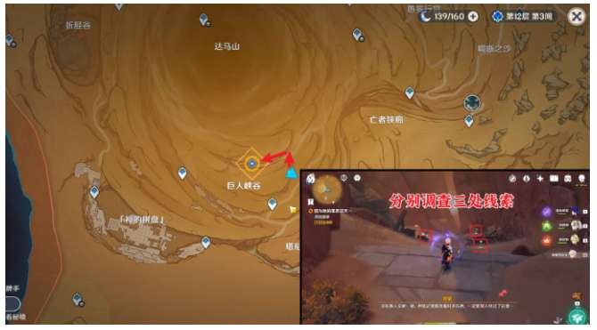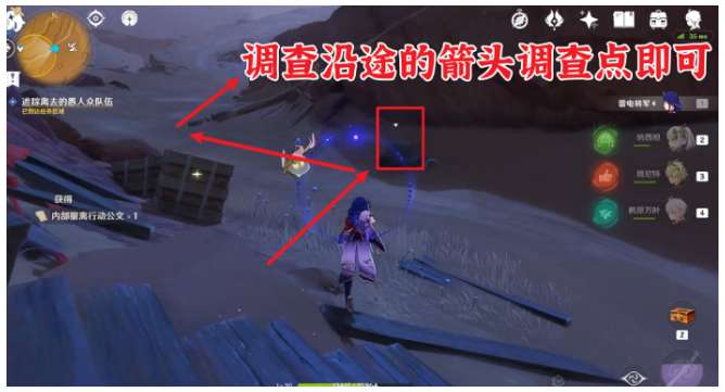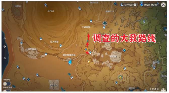 2、根据任务指引,调查商队最后出现的地点。调查路线如下。
