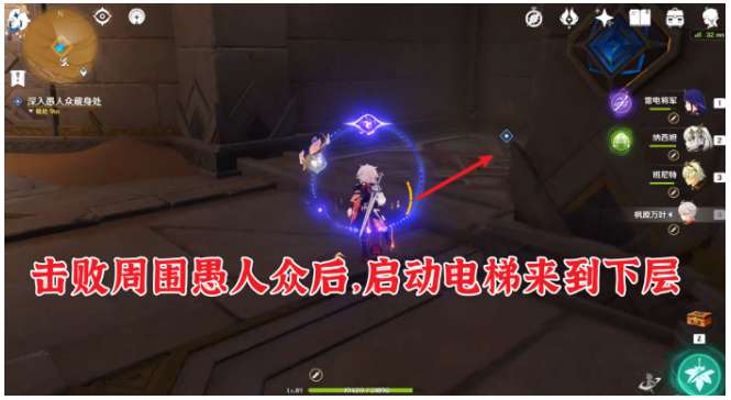 3、击败愚人众,利用电梯前往下层愚人众藏身处。