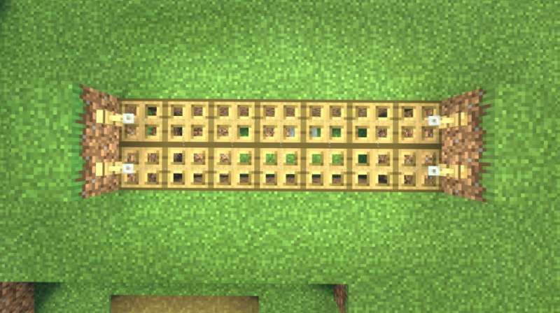 1、首先挖一个两格宽,长度和深度任意的坑洞,并在表面铺上活板门。
