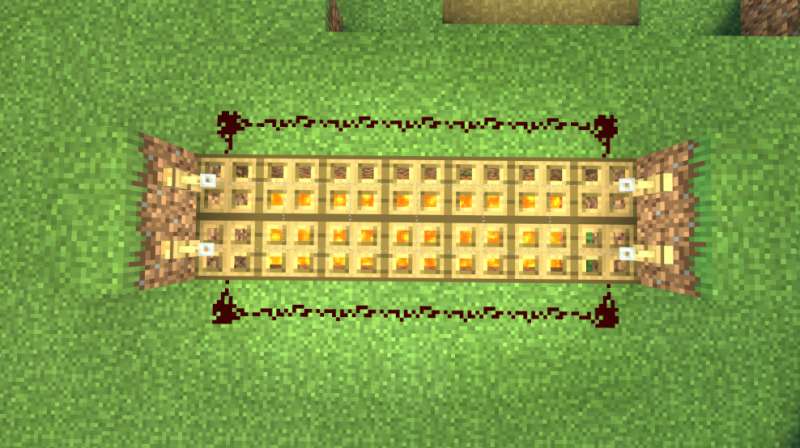 3、最后用红石粉连接所有活板门,并在活板门的下方放岩浆。