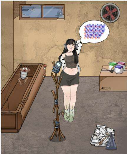 3、窗户改变后,向左滑动窗帘,拖动火箭到自行车
