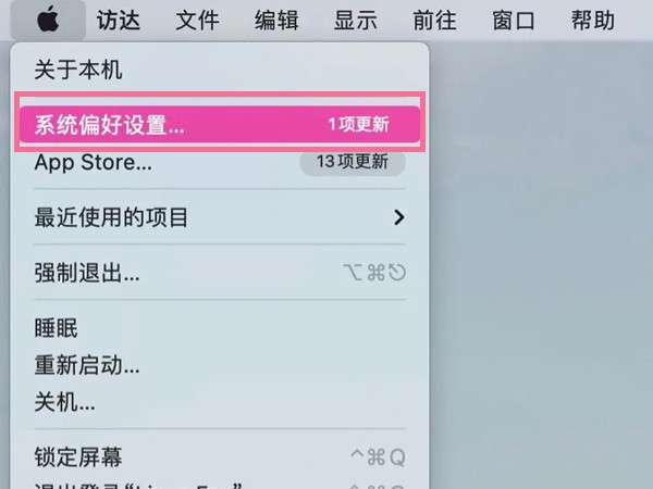 1、找到电脑左上角的苹果图标,选择【系统偏好设置】。