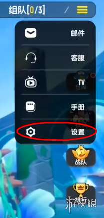 二、游戏内兑换 1、进入游戏主界面。 2、从主界面右上角的组队人数信息的右侧进入游戏设置界面。