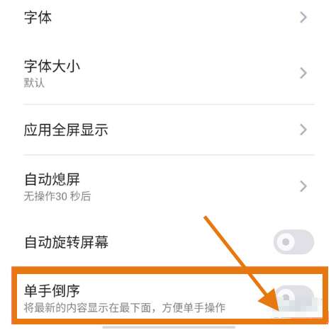 2、将单手倒序功能开启即可。