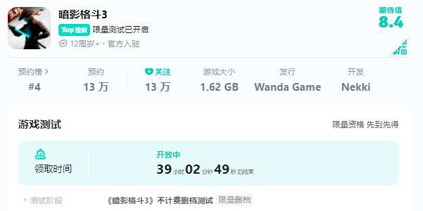 暗影格斗3测试资格怎么获得?玩家需要前往taptap手游搜索【暗影格斗3】详情页面最底下,参与测试即可。下面十大评测就为大家带来暗影格斗3测试资格获取攻略,一起来看看吧!