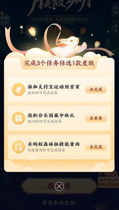 以上就是关于支付宝月是故乡明付款码皮肤获取攻略的全部内容分享啦,小伙伴们如果想要获取的可以根据以上方法来进行哦,希望对大家有所帮助。