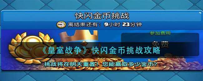 在皇室战争游戏中很多玩家还不清楚,快闪金币挑战活动怎么玩。接下来就让小编给大家带来《皇室战争》快闪金币挑战攻略,感兴趣的小伙伴们一起来看看吧,希望可以帮助到大家。