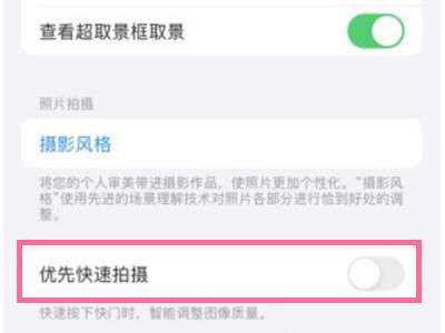 2、找到【优先快速拍摄】右侧的开关关闭即可。