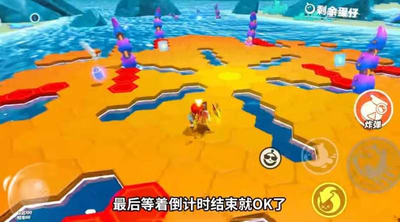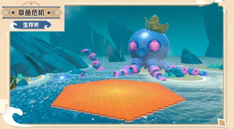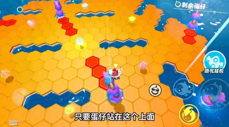 1、地图中间出现第一块红色是章鱼触手伸出来的地方,只要蛋仔们站在这个上面,是可以站到触手上的;