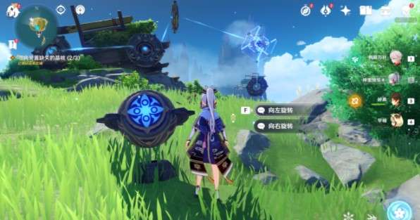 稍微解释一下原理吧,我们可以根据这个初始地图,来寻找我们要去的三个点位,有两个点位只有两个机关,剩下一个点位有三个机关。随后我们可以看到,在我们视角的右下方,它也是成功的告诉了我们,机关的左右调整顺序