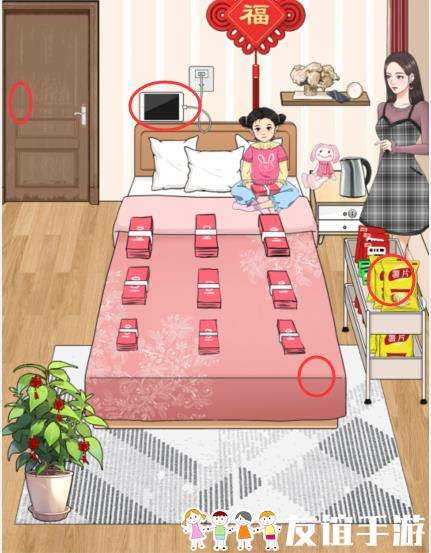 1、骗压岁钱这一关拖动下图所示物品到女孩
