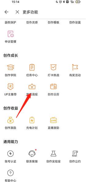 3、点击【荣誉周报】。